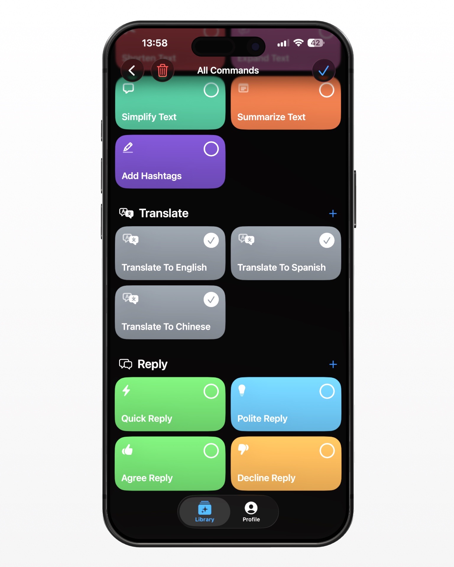 - Select text → tap "Professional" on your AI keyboard